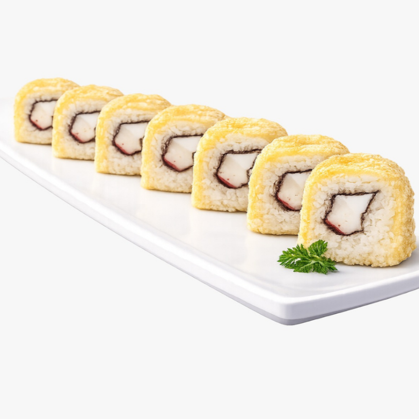 Cubierto de plátano frito, relleno de queso crema y cangrejo, acompañado de salsa tampico (50 grs)