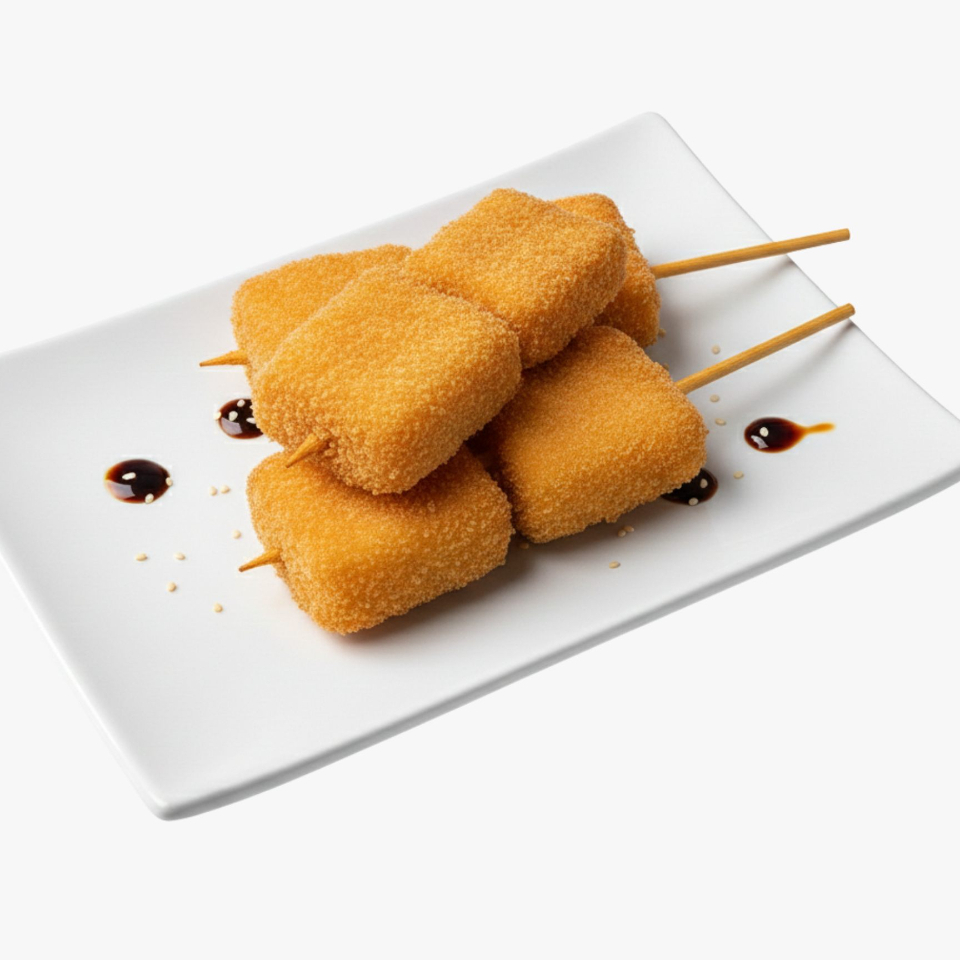 Brochetas empanizadas de queso, orden de 3 piezas (20 grs c/u)