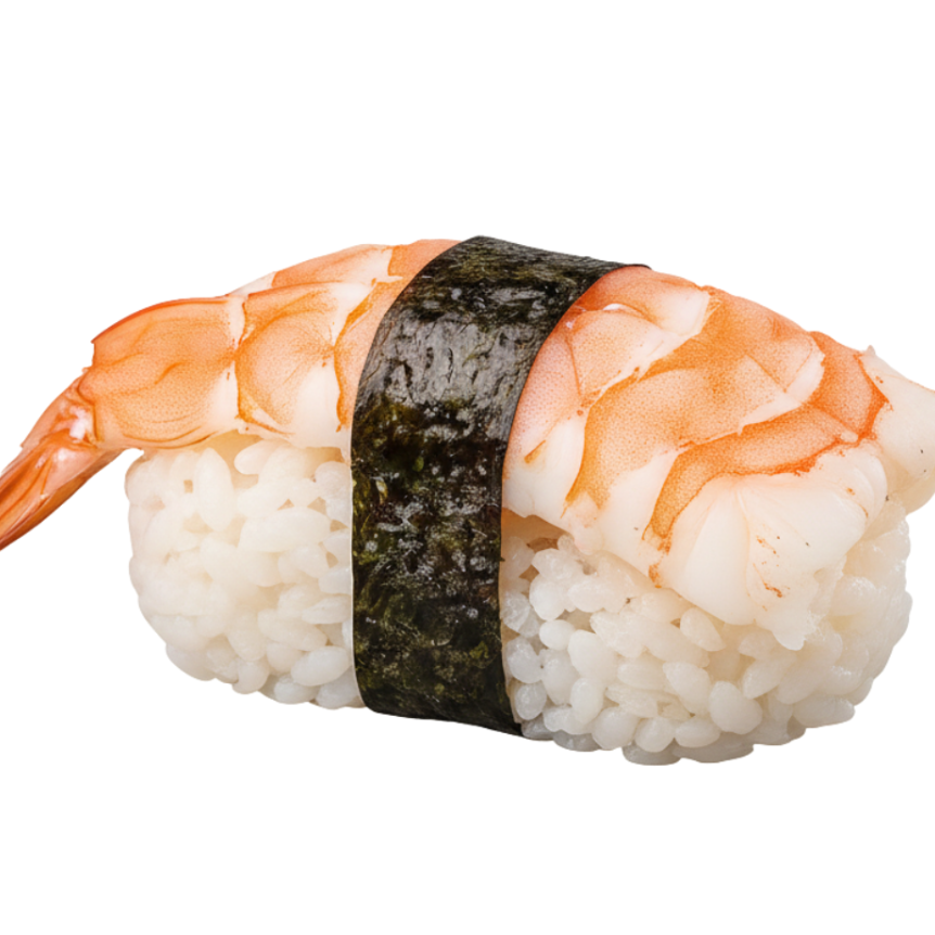 Tradicional bocado japonés de arroz y camaron (20 grs).