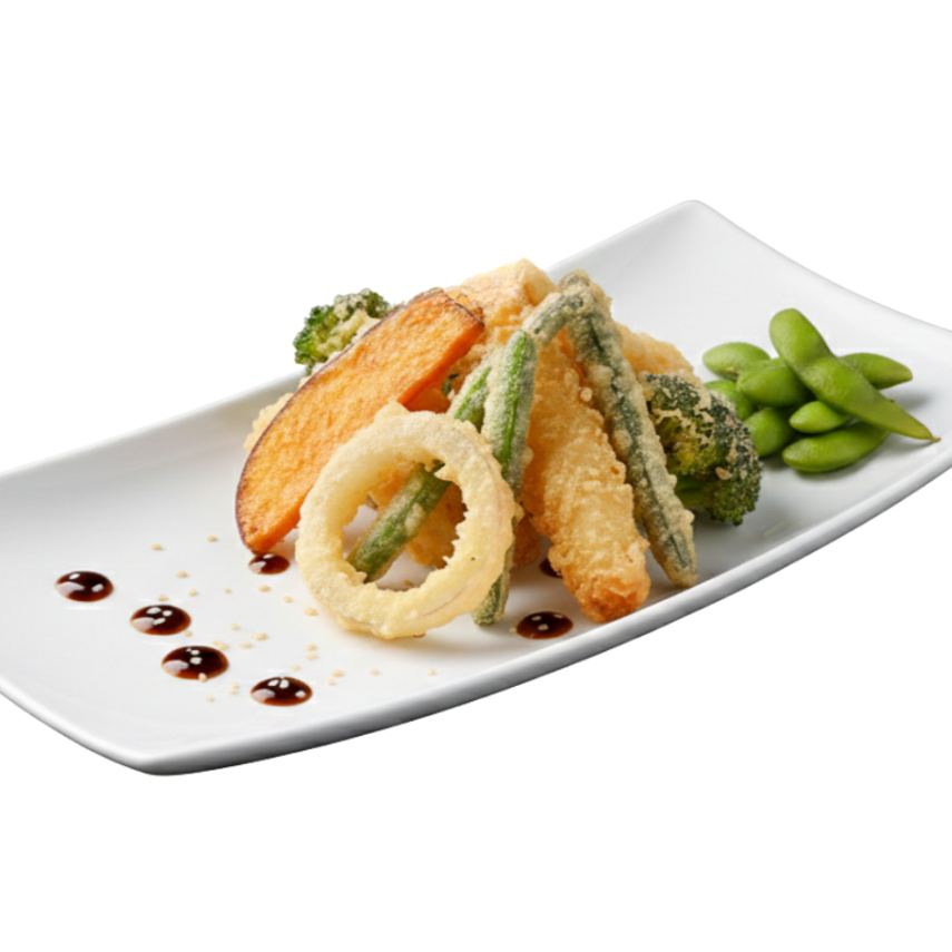 Verduras crujientes rebosadas en pasta tempura (Calabaza, brócoli, cebolla, champiñón y zanahoria 2 pzas. c/u).