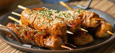 3 Piezas, brocheta de filete de res en salsa agridulce.