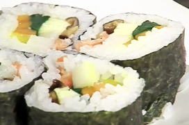 Camarón, zanahoria, aguacate, queso y tampico por fuera.