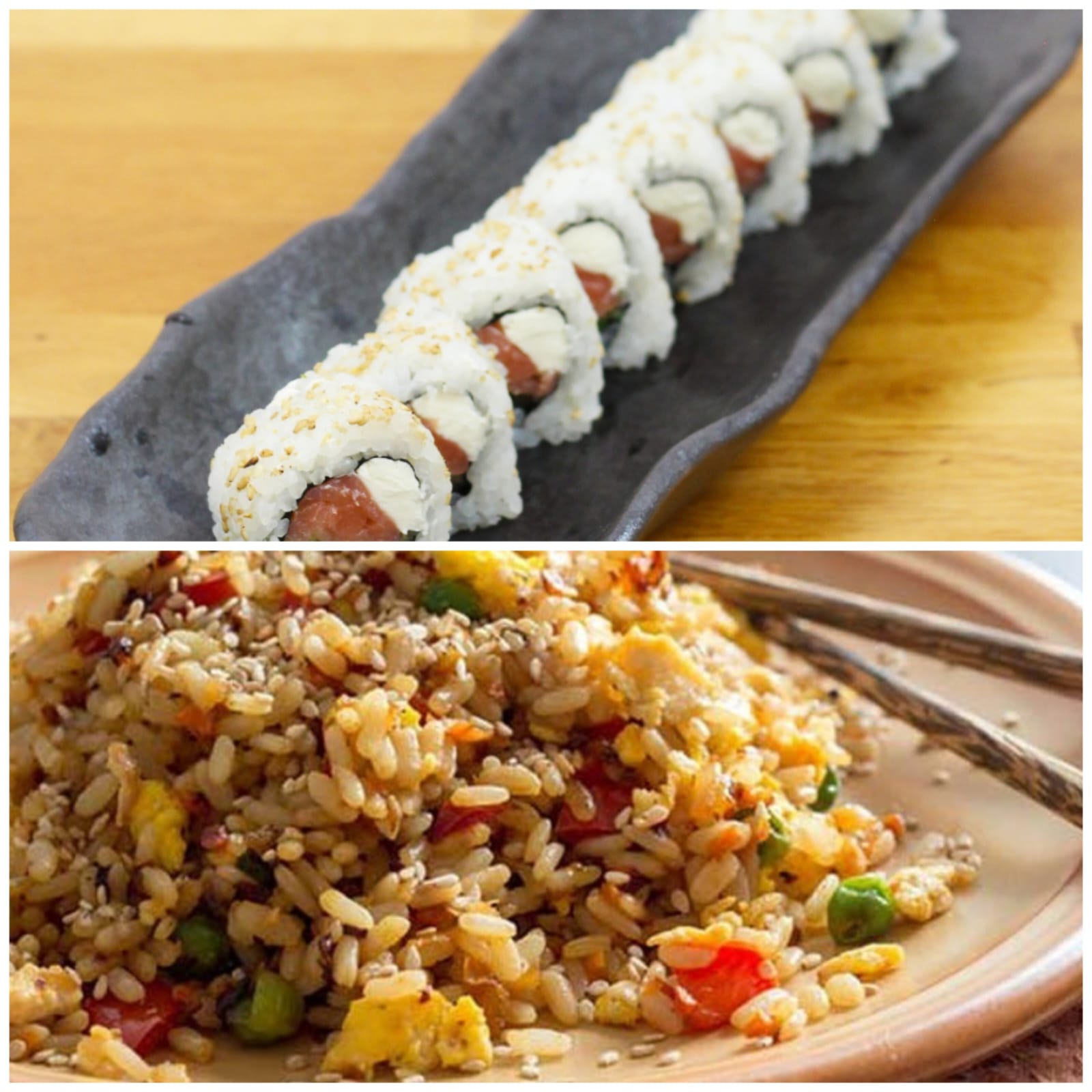 Arroz frito con verduras y carne molida de res, (elige tu proteína o complemento extra). Plato personal