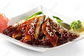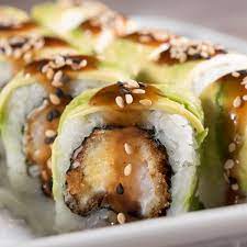 Aguacate, camarón, chiles toreados, queso crema, bañado de anguila y Tampico.