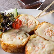 Queso crema, camarón, aguacate y Tampico por fuera.