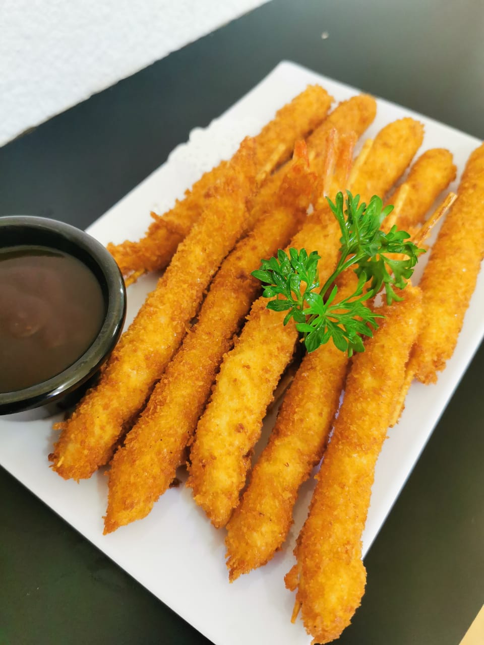Camarón, zanahoria, aguacate, queso y Tampico por fuera.