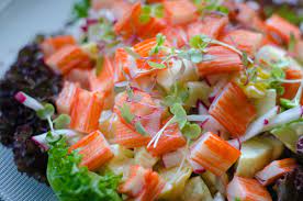 Combinación de 3 lechugas con pescado, camarón y cangrejo empanizado.