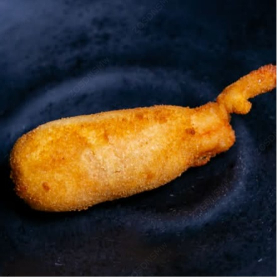 Camarón grande relleno de queso crema, empanizado y frito hasta dorar.