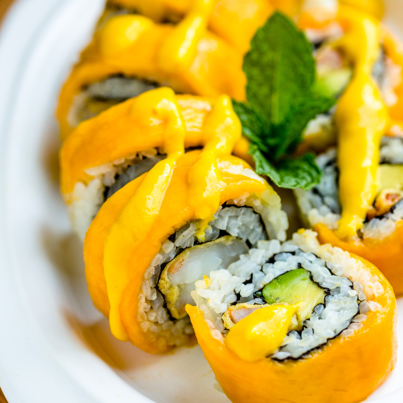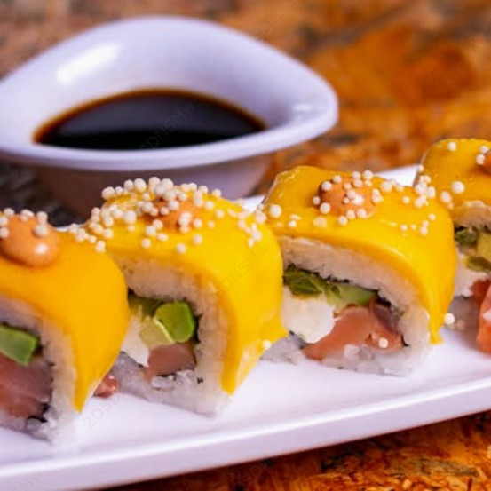 Salmón, queso, aguacate y mango araré con salsa chipotle.