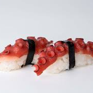 Rebanada de pulpo cocido sobre bocado de arroz artesanal (1 pieza).