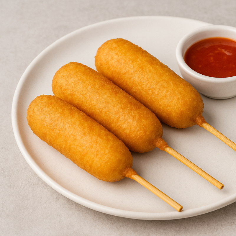 Brocheta empanizada de queso o plátano frito, crujiente por fuera y suave por dentro.