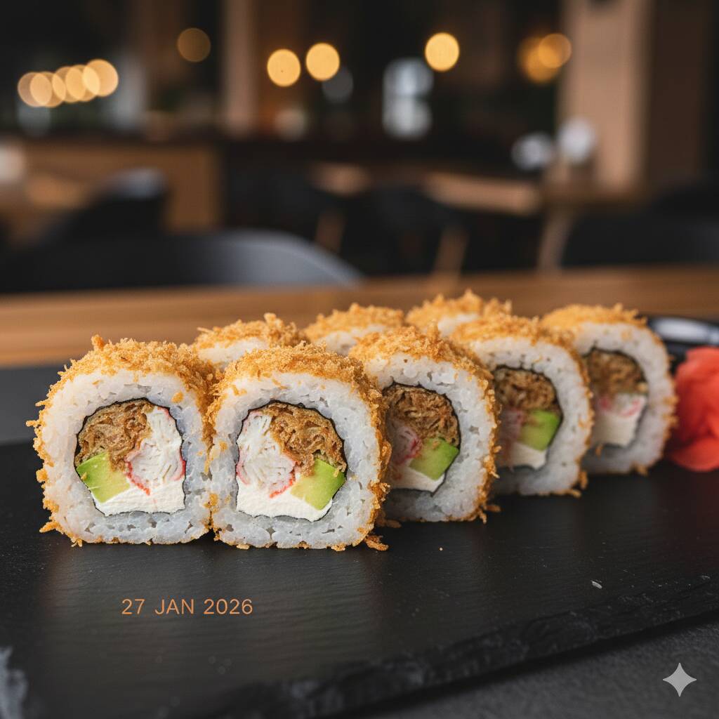 Versión premium con queso crema, aguacate, pepino, camarón, masago y ajonjolí.