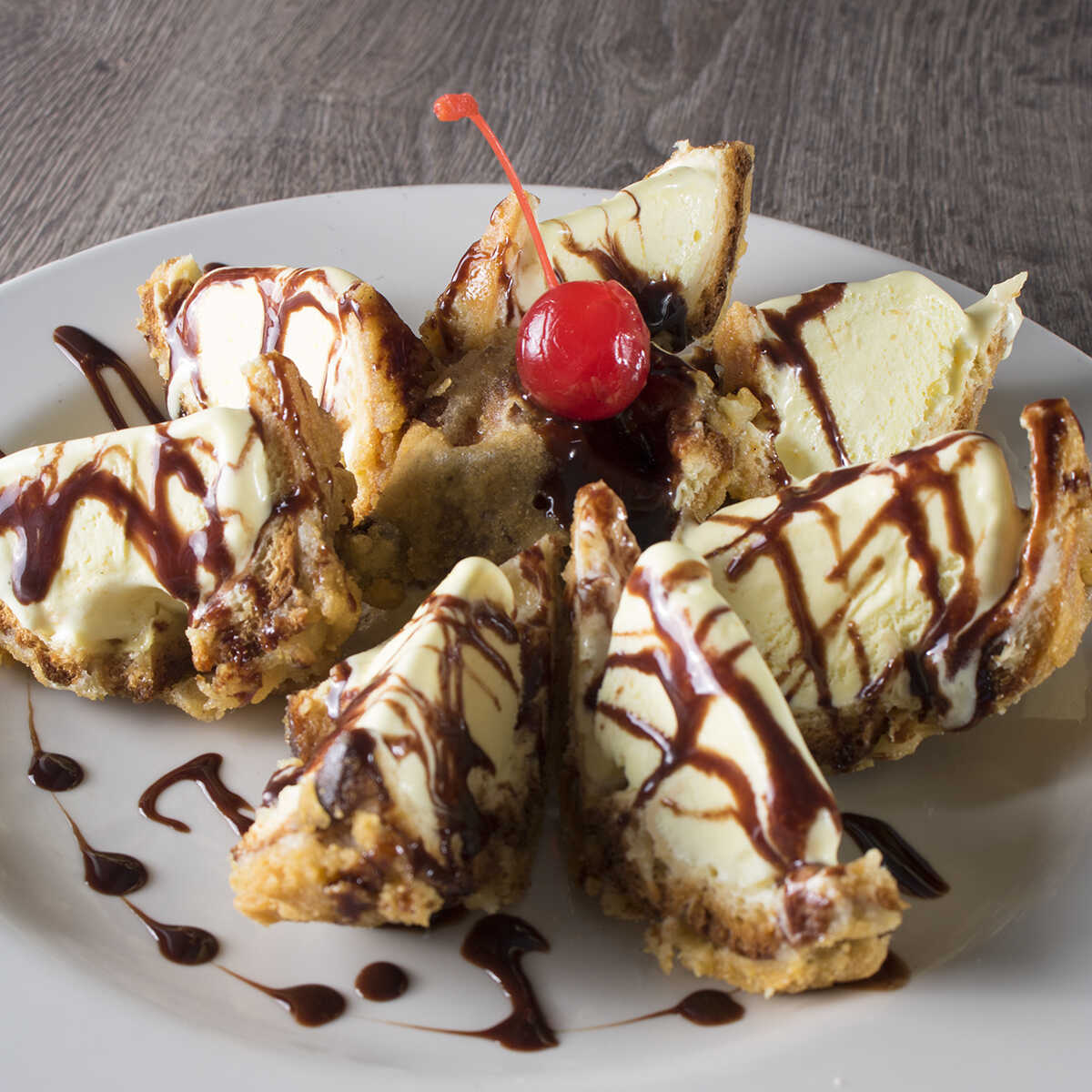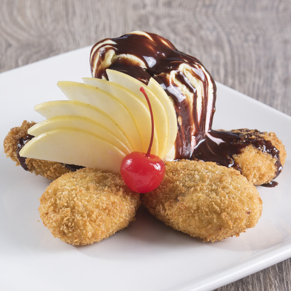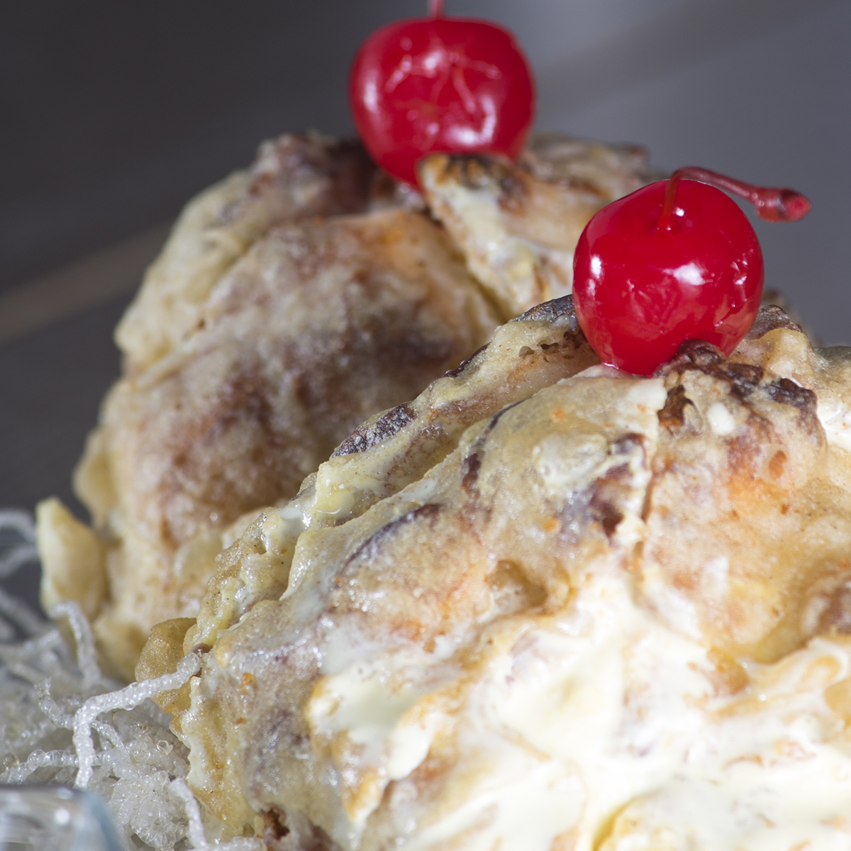 Capeado, relleno de helado de vainilla, fresa, frambuesa, cajeta o chocolate