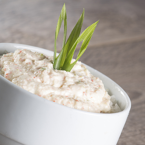 Camarón triturado, zanahoria, aguacate, queso manchego, tampico y cebollín