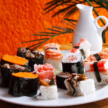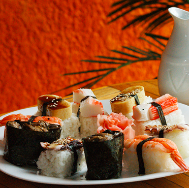 10 Piezas combinadas que incluyen anguila, salmón ahumado, masago, surimi y tekkamaki.