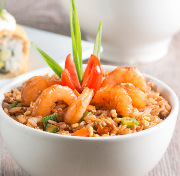 Arroz frito con verduras y camarón.