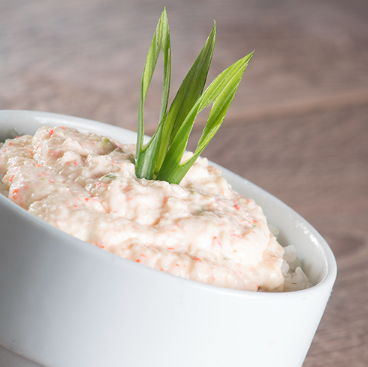 Camarón triturado, zanahoria, aguacate, queso manchego, tampico y cebollín.