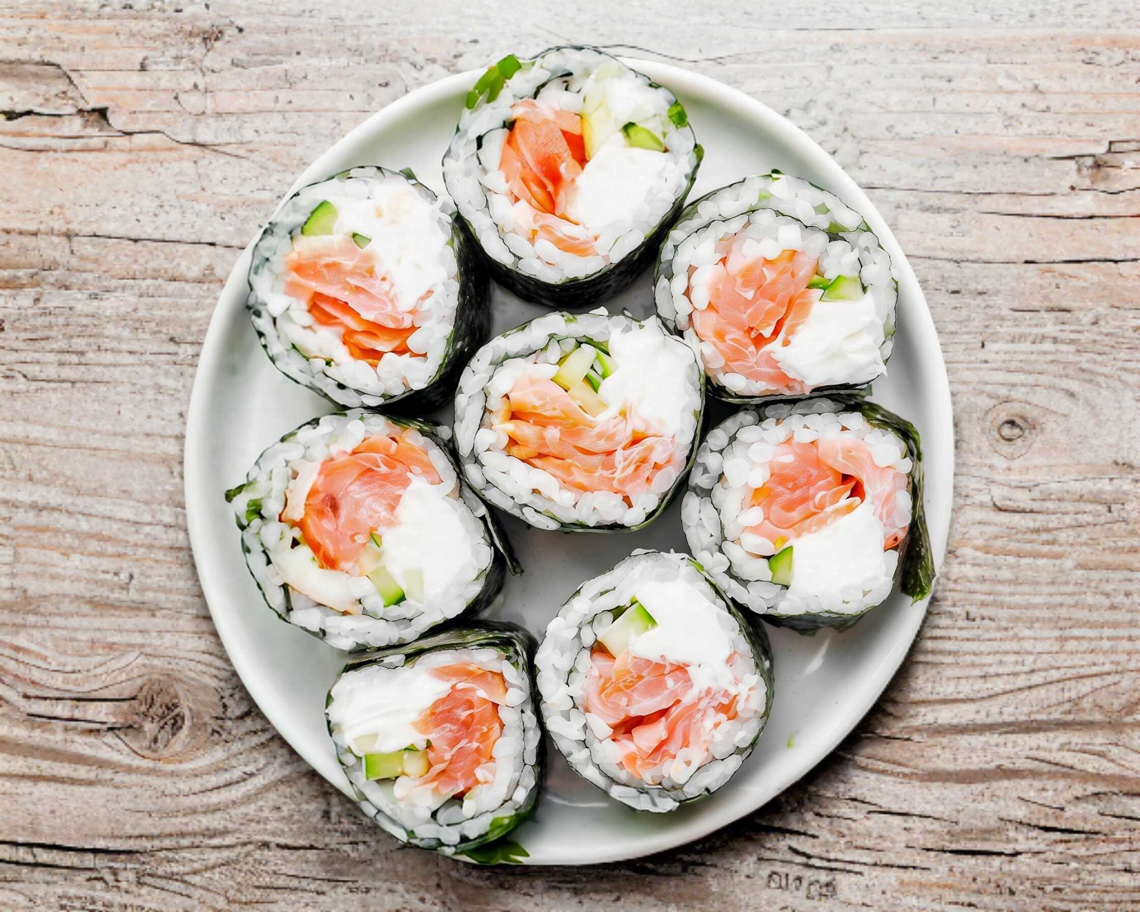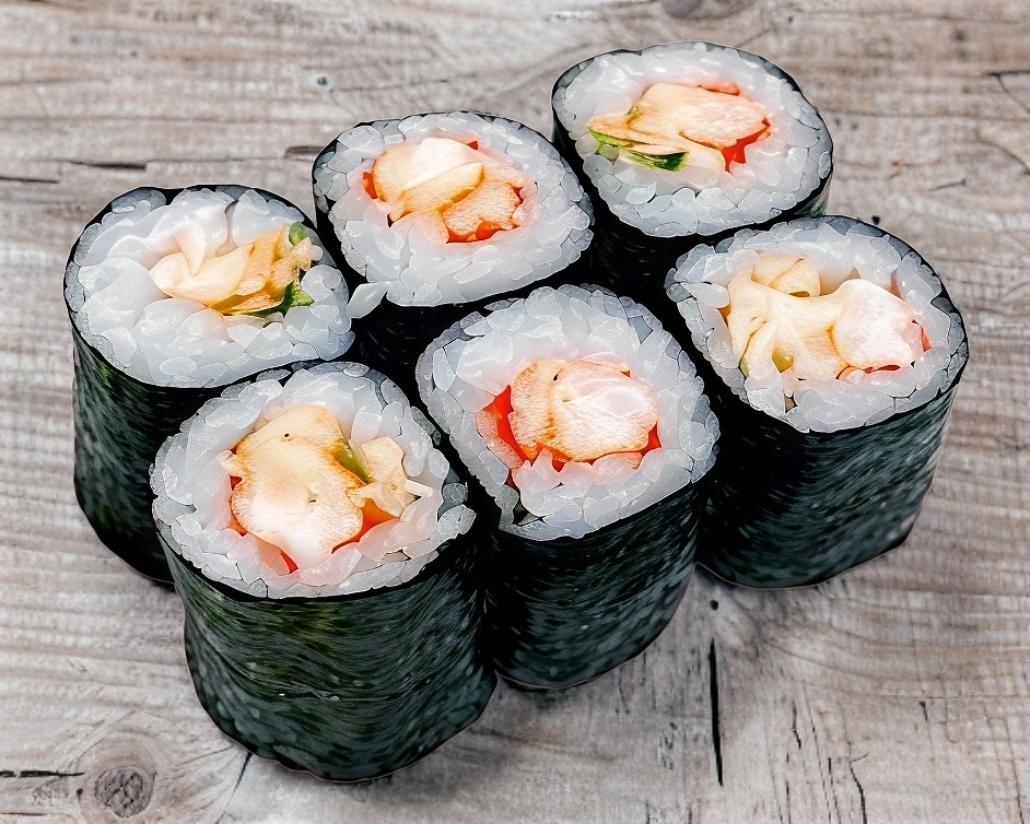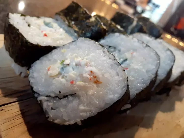 P.F. Ajonjolí, arroz P.D. Queso, pepino y camarón