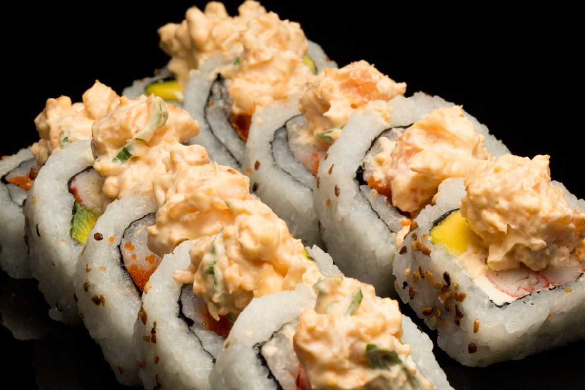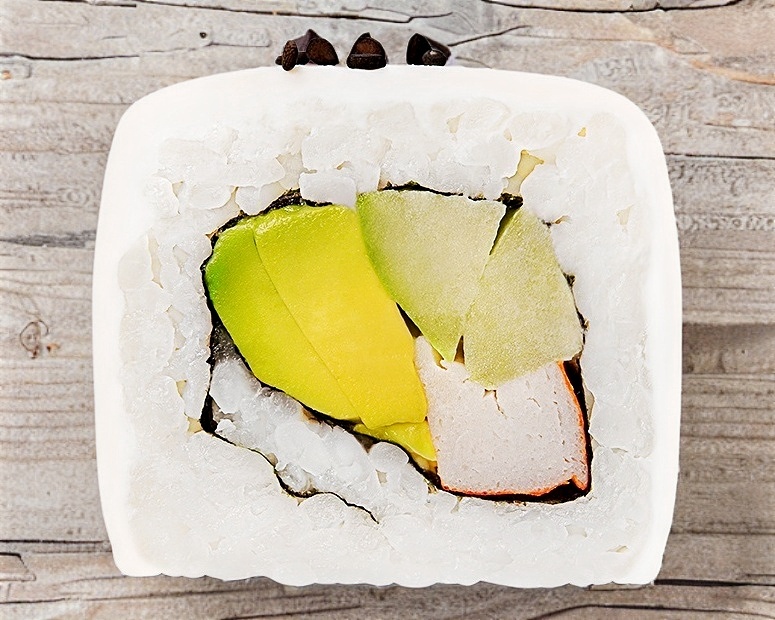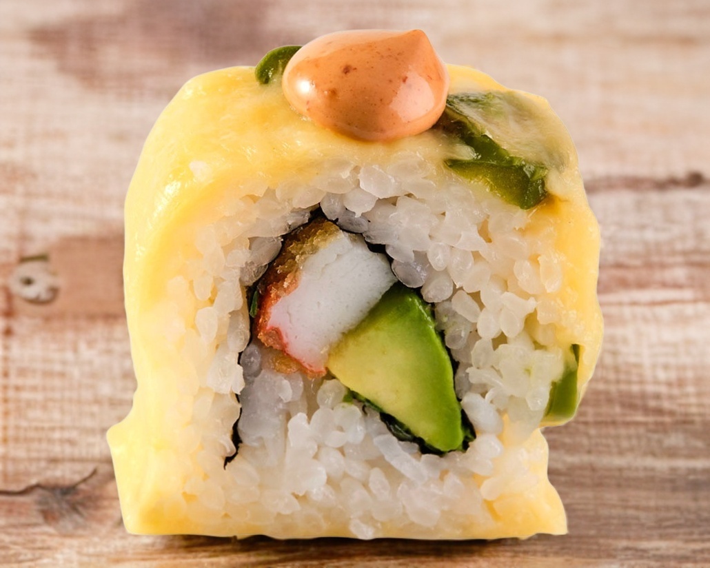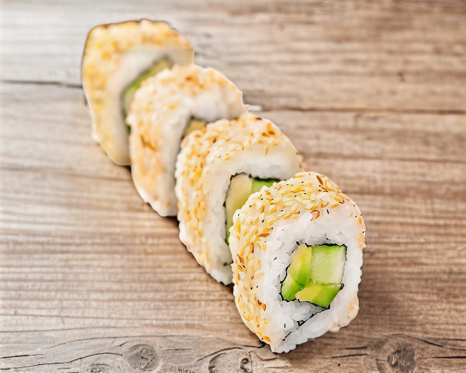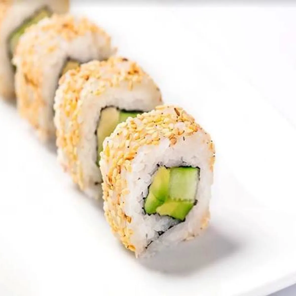 P.F. Ajonjolí y arroz P.D Queso, aguacate, pepino, y surimi