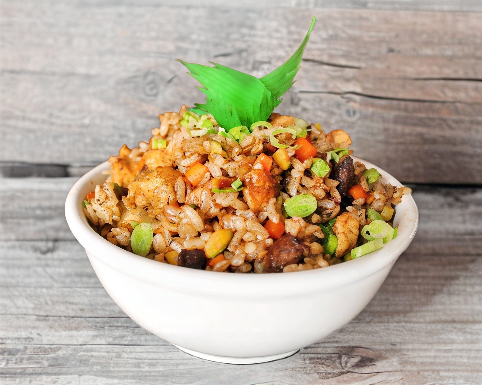 Arroz asado con verduras, huevo cebollin pollo y res, Tampico