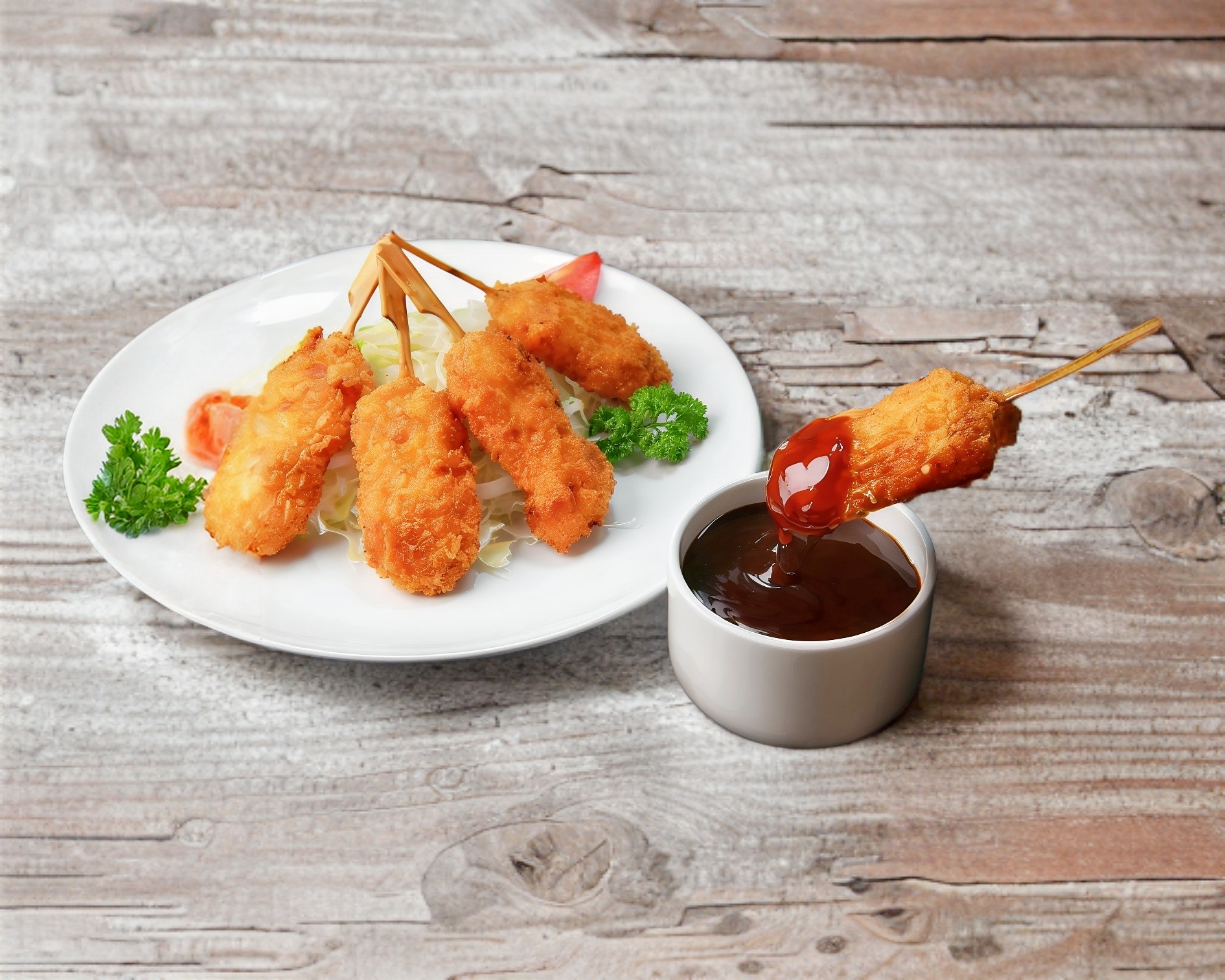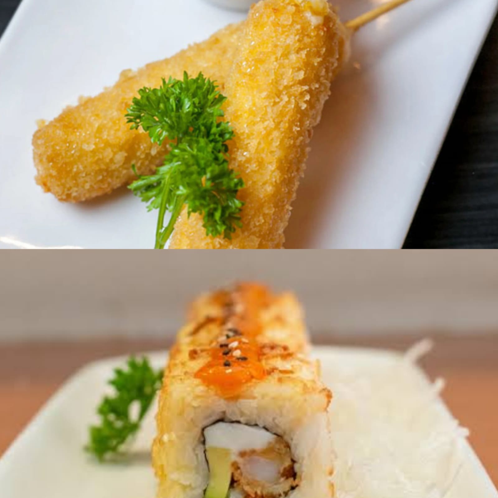 Kushiague de Camarón con Queso*1 + Rollo Empanizado Coco con Mango*1