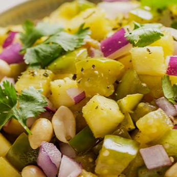 Nuestra versión tropical del pico de gallo con trozos de piña dulce.