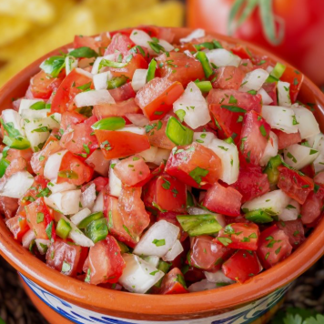 Guarnición fresca de jitomate, cebolla, chile y cilantro picado.