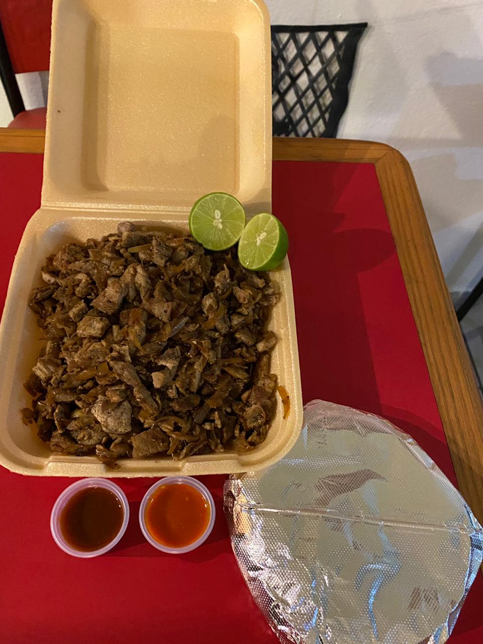 Carne deliciosa de tu eleccion acompañada de tortillas, limones y nuestra variedad de salsas