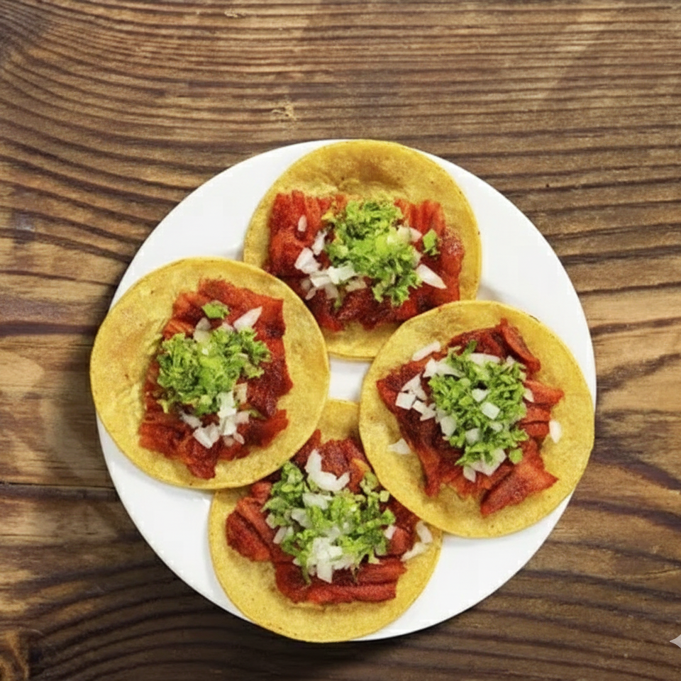 4 Tacos esquineros favoritos a elegir, pastor, chuleta y chuleta con tocino.