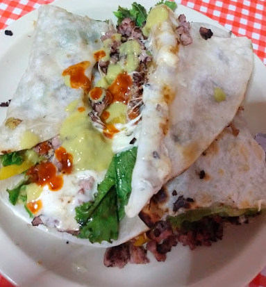 LAS GRINGAS MAS GRANDES, LA CARNE DE TU ELECCION, GRATINADA CON EL MEJOR QUESO Y 2 TORTILLAS DE HARINA GIGANTES, PARTIDA EN 8 REBANADAS, MAS DE MEDIO KILO.