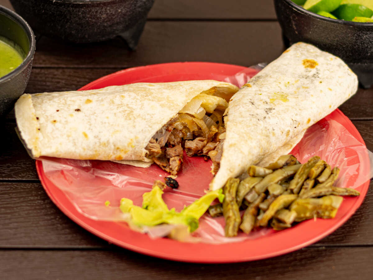 La mezcla perfecta: Tortilla de harina, carne de tu preferencia y mucho queso derretido