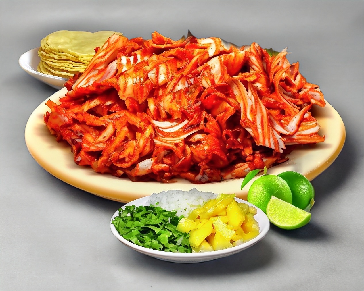 Cilantro, cebolla, tortillas y salsa.