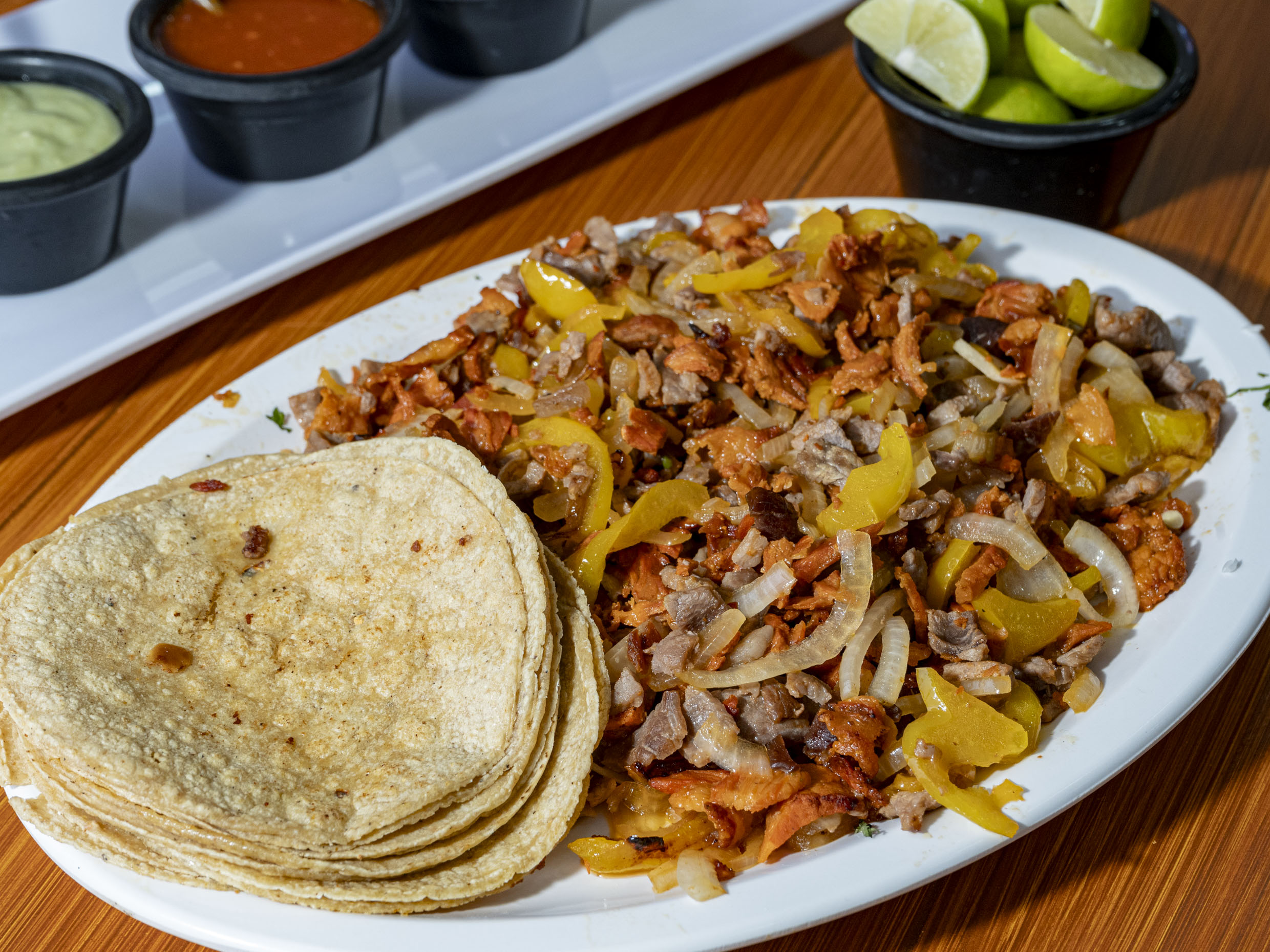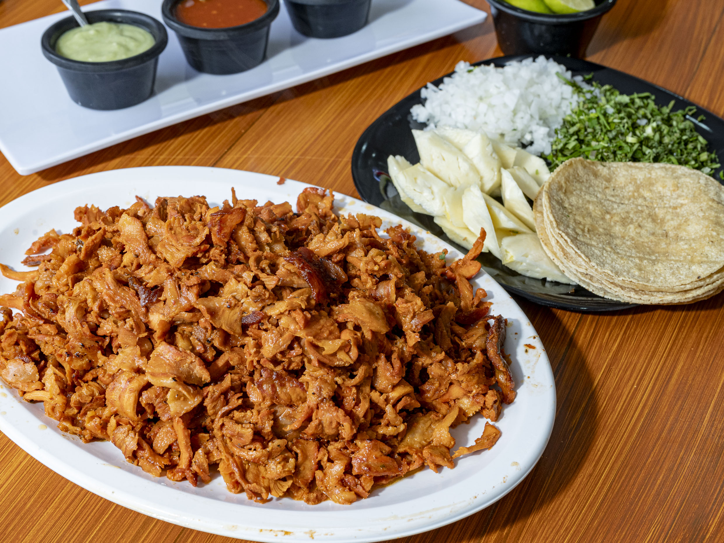 Cilantro, cebolla, tortillas y salsa. Con el gran sabor que nos distingue.