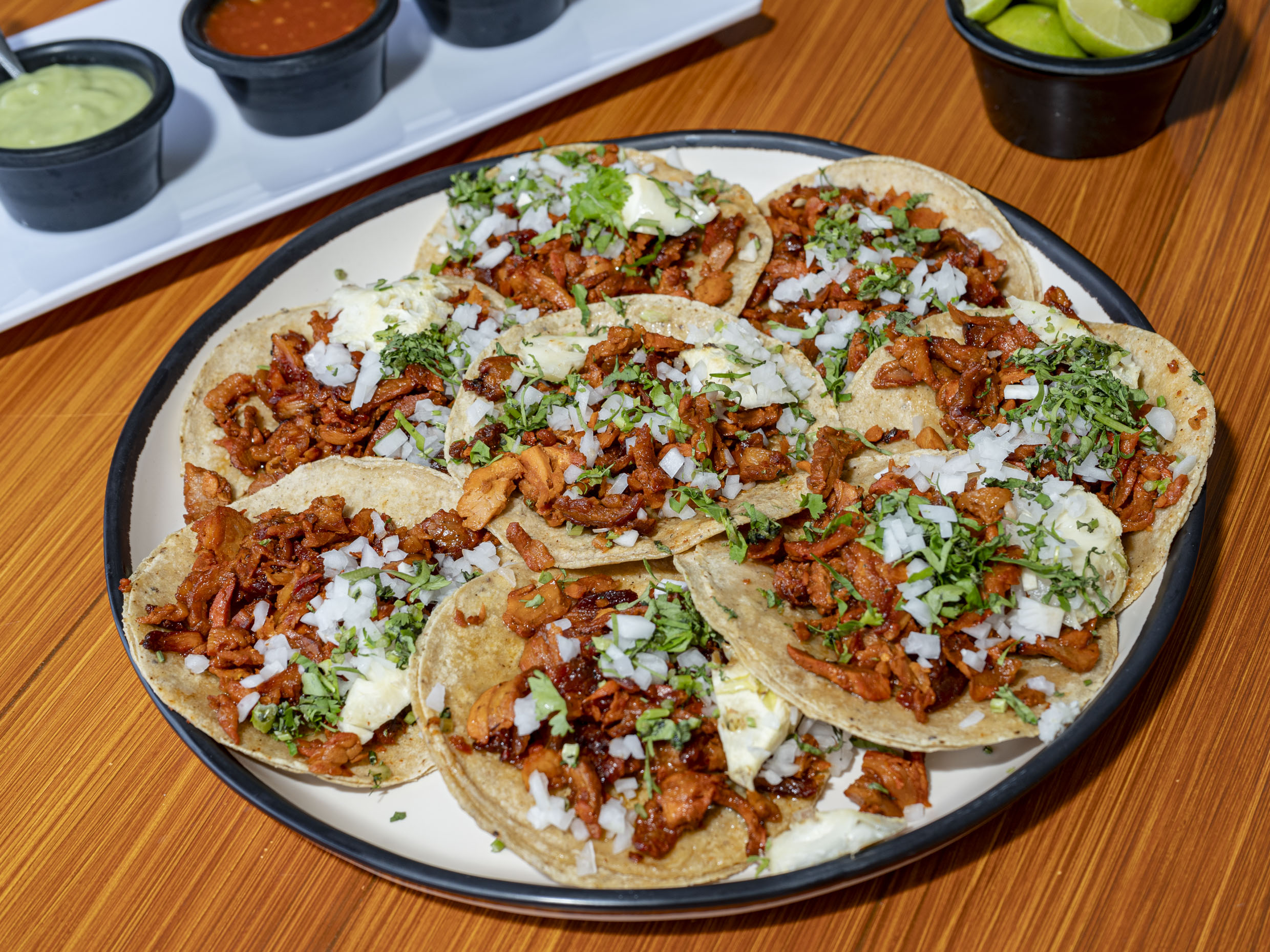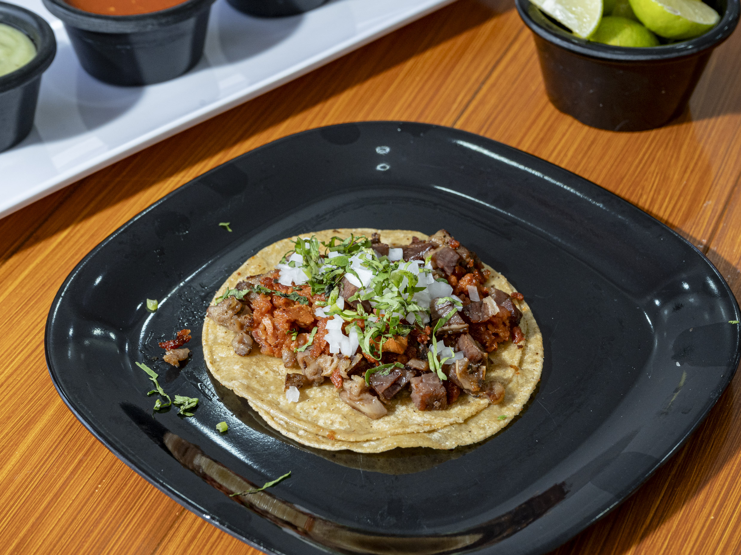 Cilantro, cebolla, tortillas y salsa. Con el gran sabor que nos distingue.
