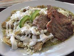 Frijoles fritos, lechuga, crema y queso con bistec encima o pollo.