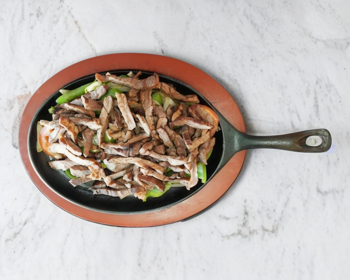 Sopa y una orden de fajitas al fuego del tequila 250 g. peso en crudo.