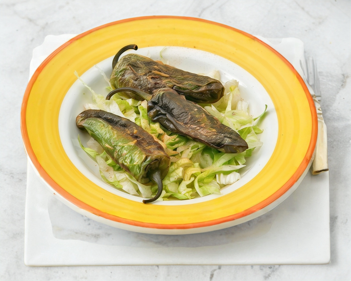 Chiles jalapeños toreados, preparados con limón, sal y maggie.