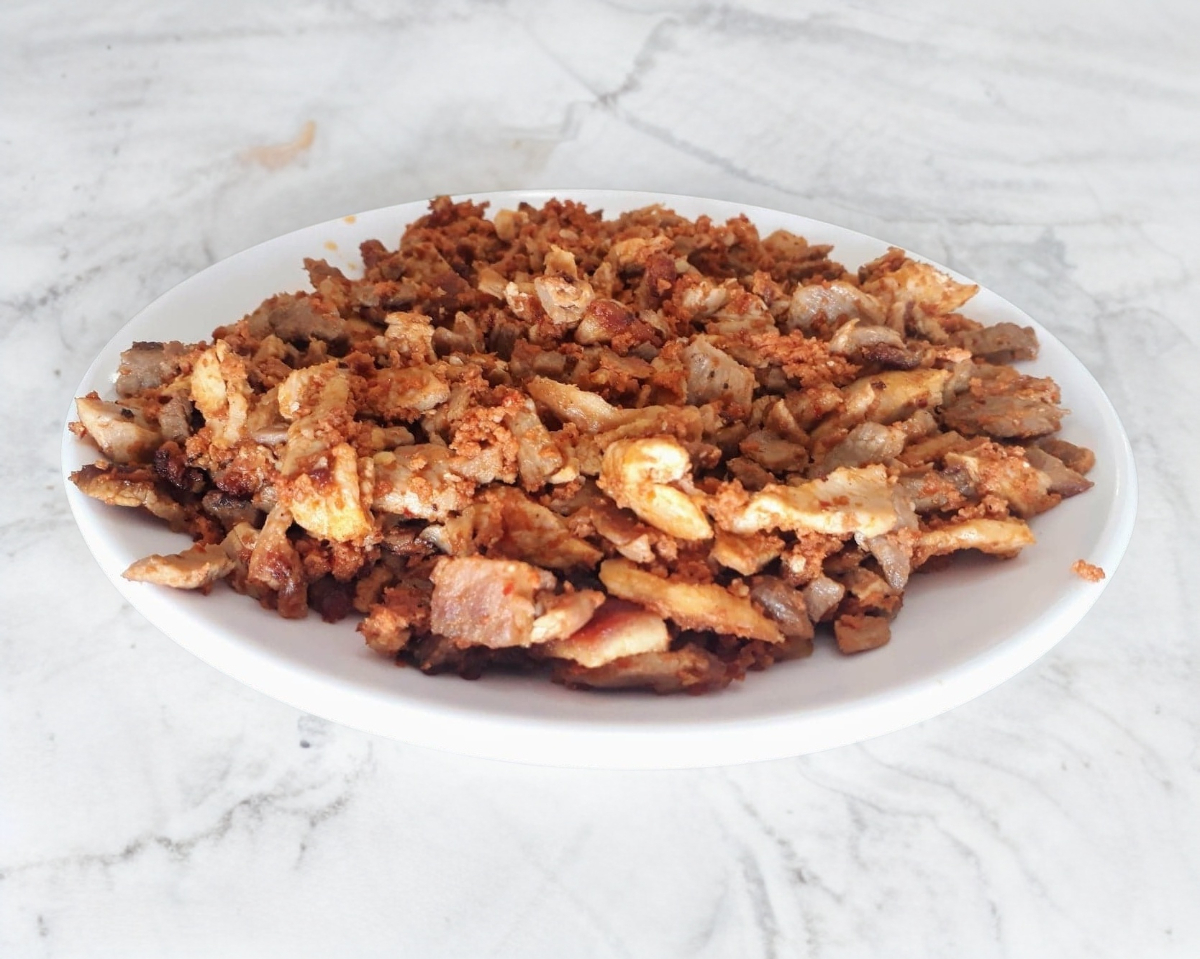 500 g. peso en crudo, con jitomate, cebolla, morrón y tocino.