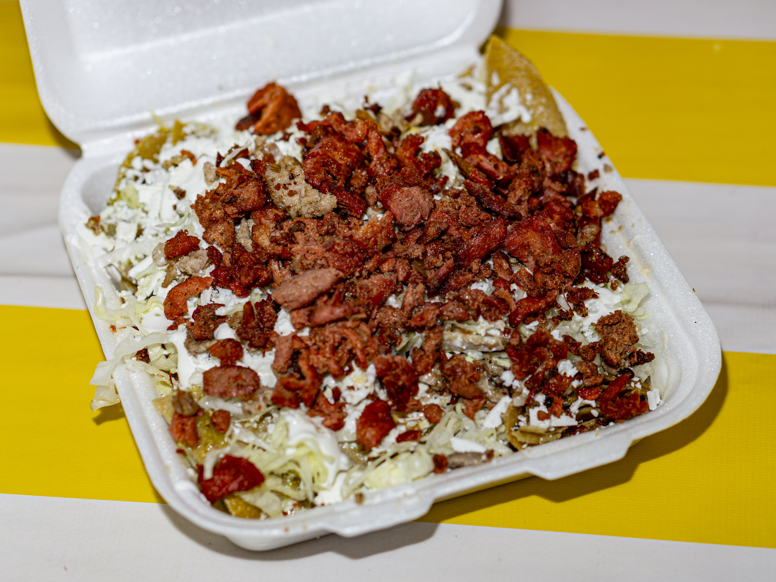 Orden de 3 o 4 piezas con salsa verde, lechuga, cebolla, queso y crema. Proteina a tu elección