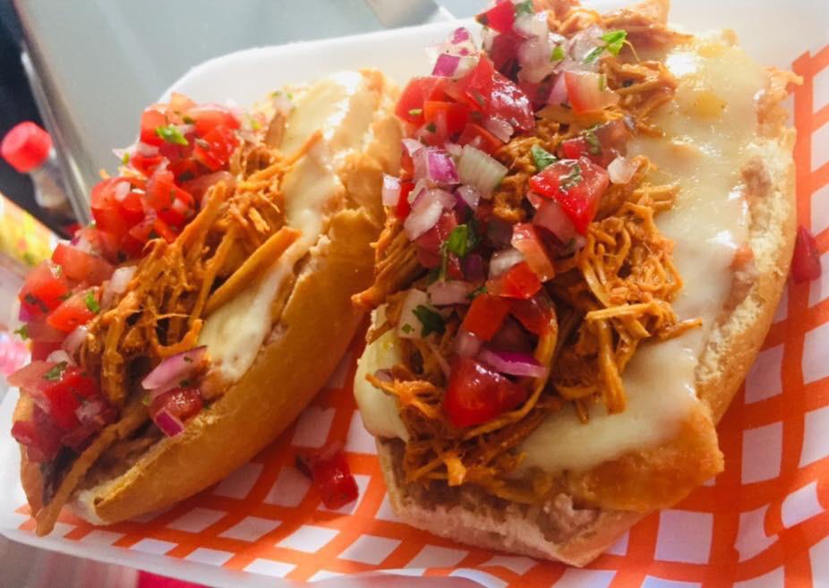 Torta : Delicioso pan crujiente con el ingrediente perfecto Cochinita Pibil de TakOink con una capa de frijoles, acompañada de queso, crema ,cebolla morada y un toque de salsa de habanero , receta de la casa