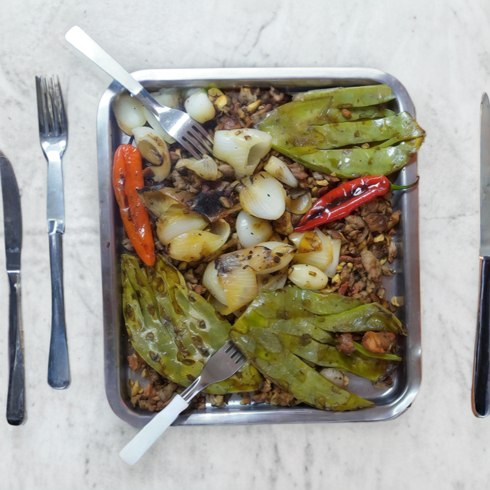 Arrachera, bistec, pastor, pollo, nopales, chiles toreados y cebollitas. 500 gr.