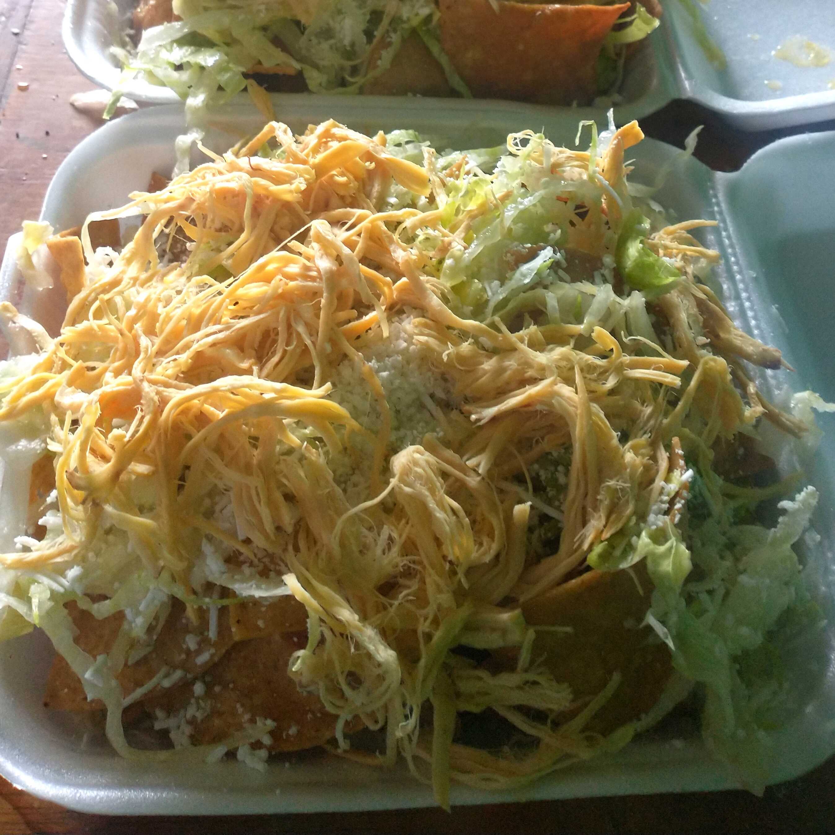 Tortilla rellena con pollo desmenuzado y bañadas con salsa verde
