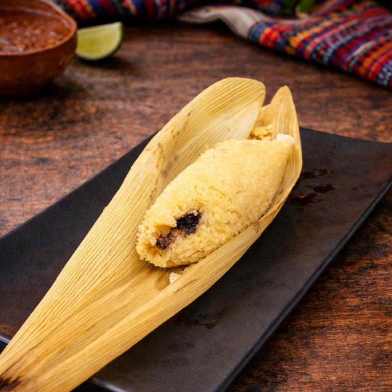 Tamal rosita con mermelada de fresa y queso cremoso.