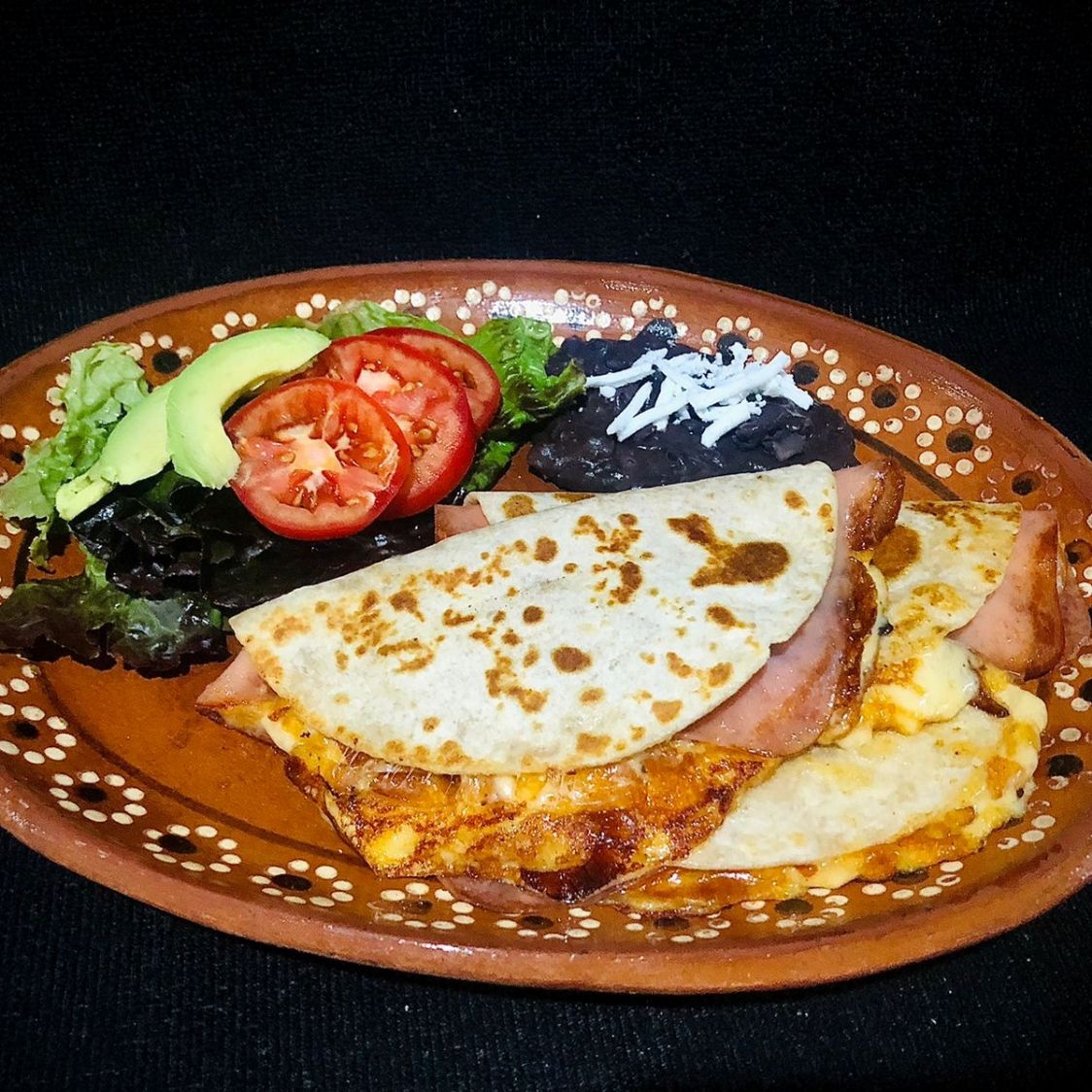 3 Sincronizadas con queso e ingrediente de tu elección, acompañado de ensalada y frijoles.