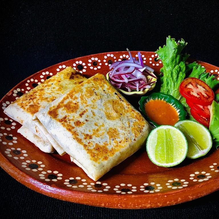 Acompañado de 1 porción de arroz, guacamole y dos enchiladas.