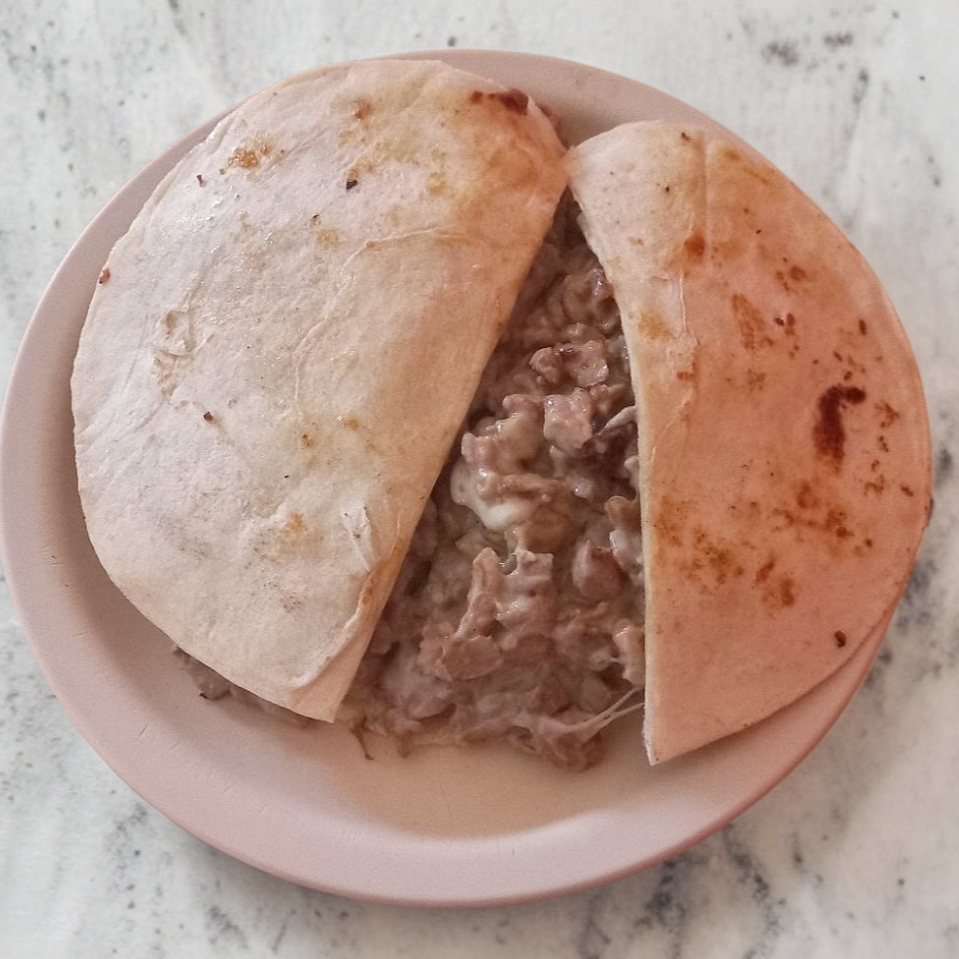 Carne con queso y tortilla de harina