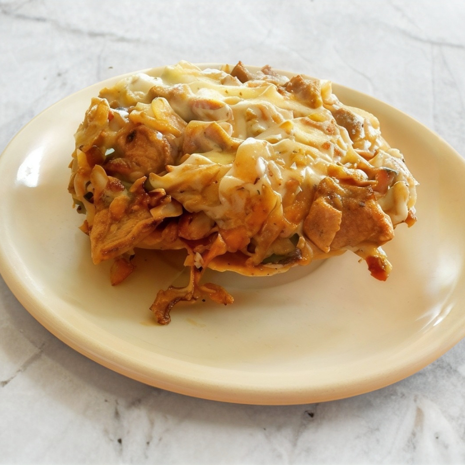 Tostadita de maiz con carne árabe y queso