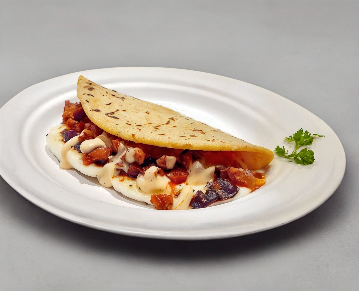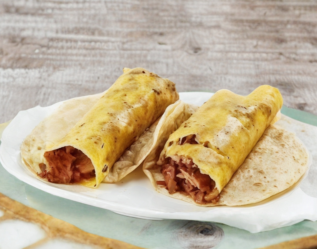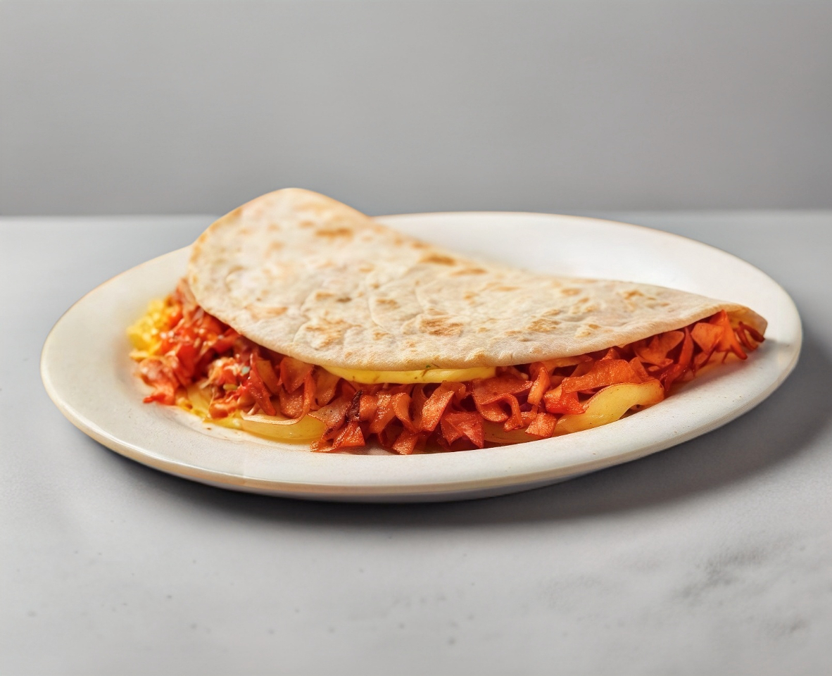 Tortilla de harina con chorizo y queso.