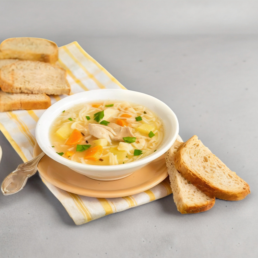 Caldo con Pollo Desmenusado