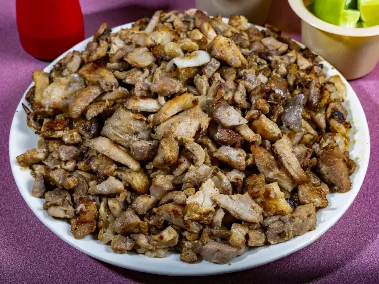 Pastor, bistec, costilla, pollo, cebolla, chorizo, pimiento morrón y queso.